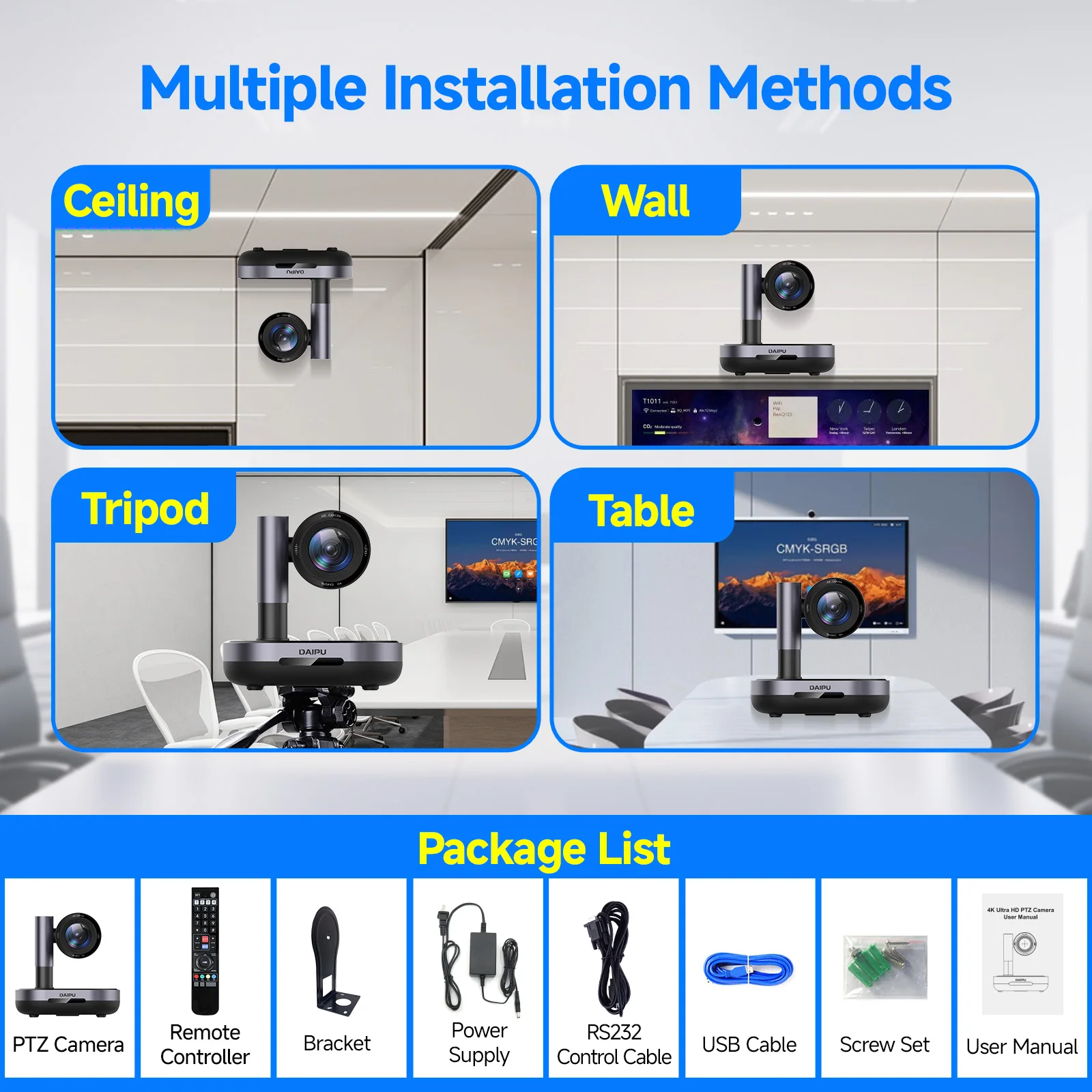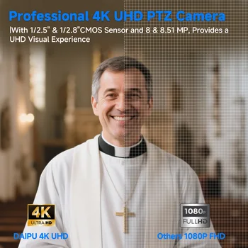 The DAIPU CX-Series NDI PTZ Camera is a professional-grade Ultra HD conference and live streaming camera designed for business meetings, education, medical conferencing, worship services, and live broadcasts. Available in multiple models with optional NDI support, the CX-Series delivers exceptional 4K image quality, smooth and silent PTZ control, and AI-powered auto tracking.