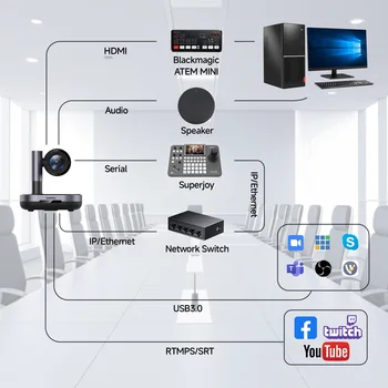 Choose 3X, 10X, 12X, or 20X optical zoom depending on room size and application.