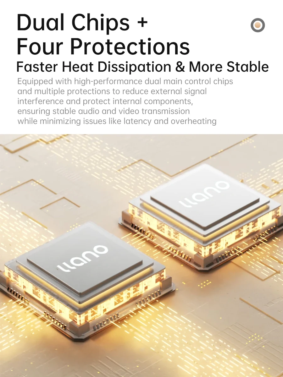 Advanced dual-chip technology with multiple protections ensures stable signal, low latency, and prevents overheating.