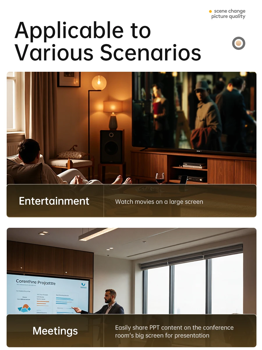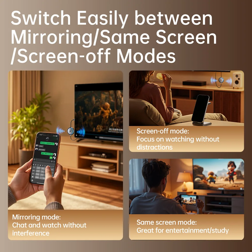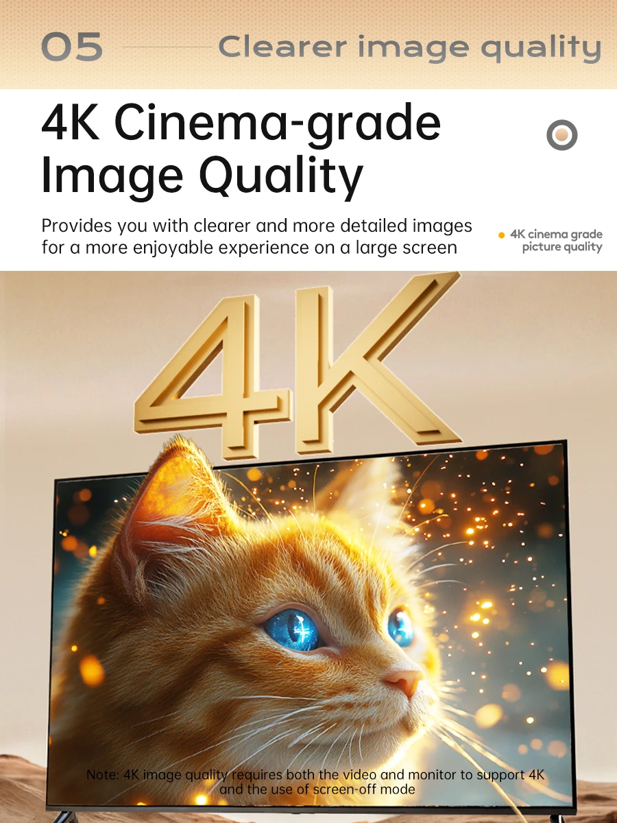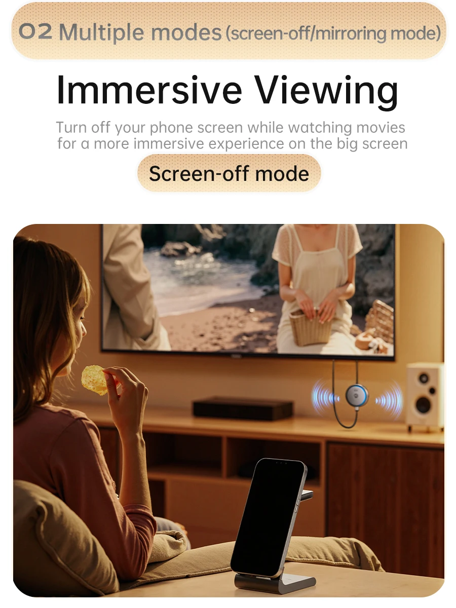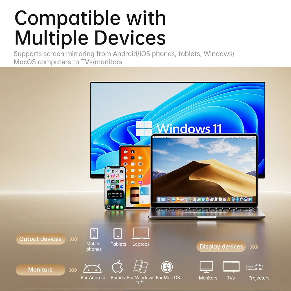 With no app or internet required, you can instantly stream videos, presentations, games, and photos in crystal-clear 4K resolution. The upgraded 5.8GHz wireless signal ensures stable performance with minimal lag, even in environments with multiple devices.