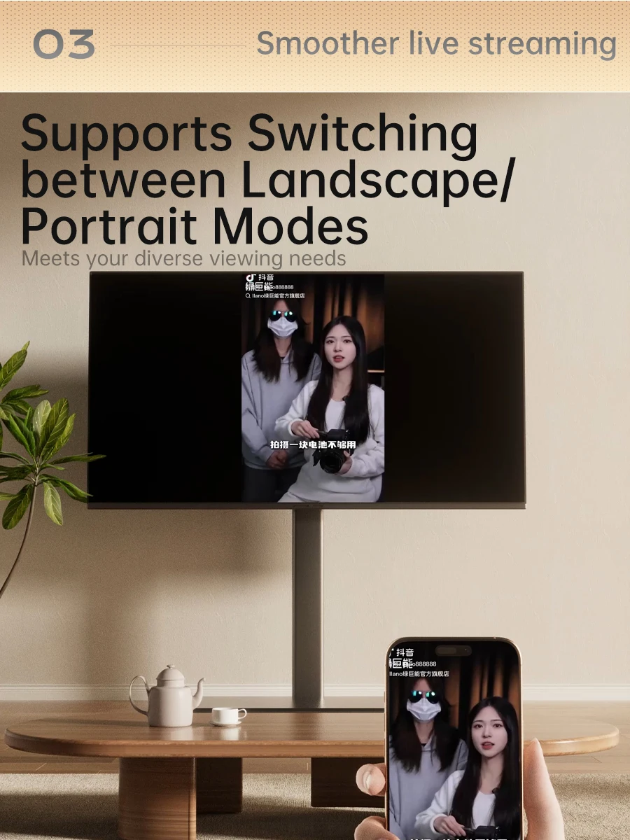 Switch easily between horizontal and vertical display modes for videos, apps, or live streaming.