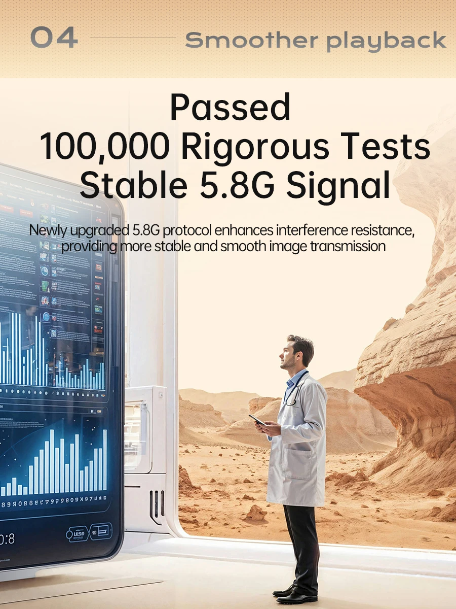 Upgraded 5.8G transmission technology reduces interference and ensures smooth, lag-free streaming.