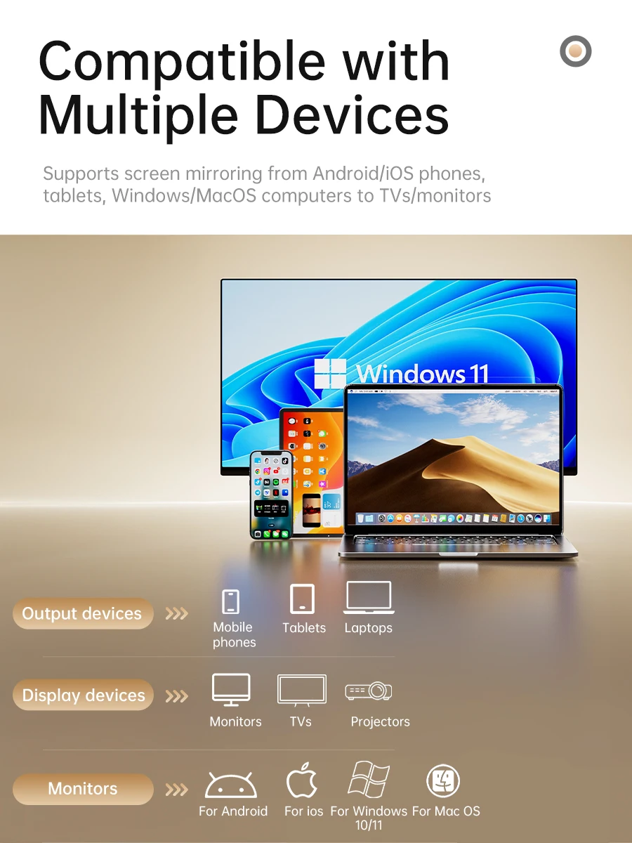Compatibility: iPhone, Android, Tablet, Laptop, TV, Projector